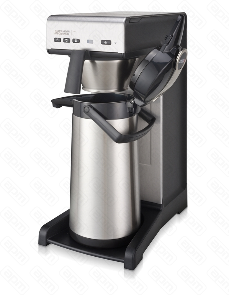 Кофеварка т.м.Bravilor Bonamat мод.TH-a, 235x406x545 мм, 220В, 2310Вт. Ёмкость для жидкости: 2.2 л. Время приготовления: 8 мин/2.2 л. Производительность: 18 л (144 чашки). Подключение к водопроводу: да. Для приготовления кофе непосредственно в термос Airpot. Сигнал "кофе готов" и индикатор накипи. 1 кофеварочный аппарат, цифровой дисплей и настраиваемые параметры. В комплект входит фильтрующая ёмкость из нержавеющей стали. Внимание: термос Airpot приобретается отдельно.