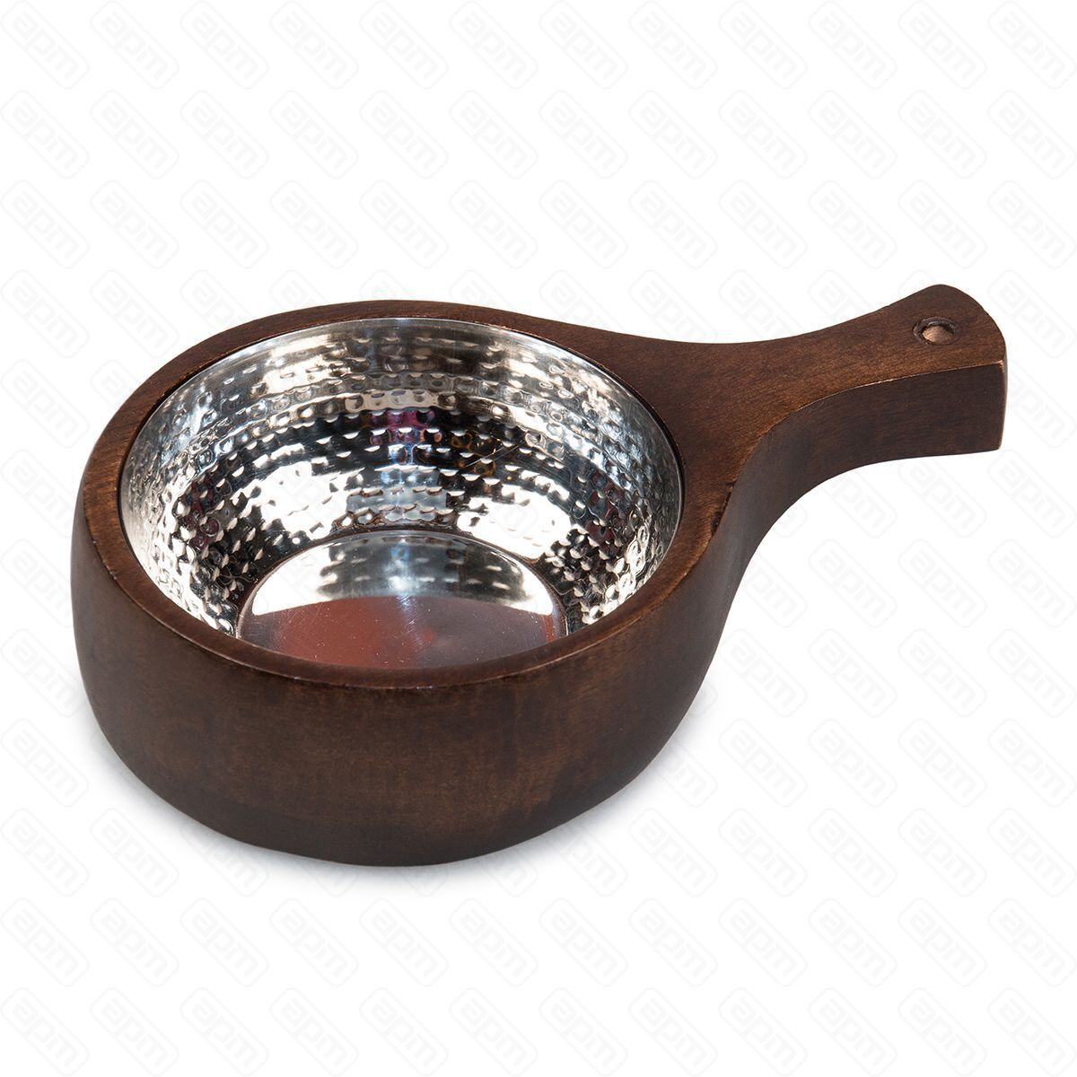 Чашка нержавейка 400 мл для подачи в деревянной подставке, P.L. Proff Cuisine
