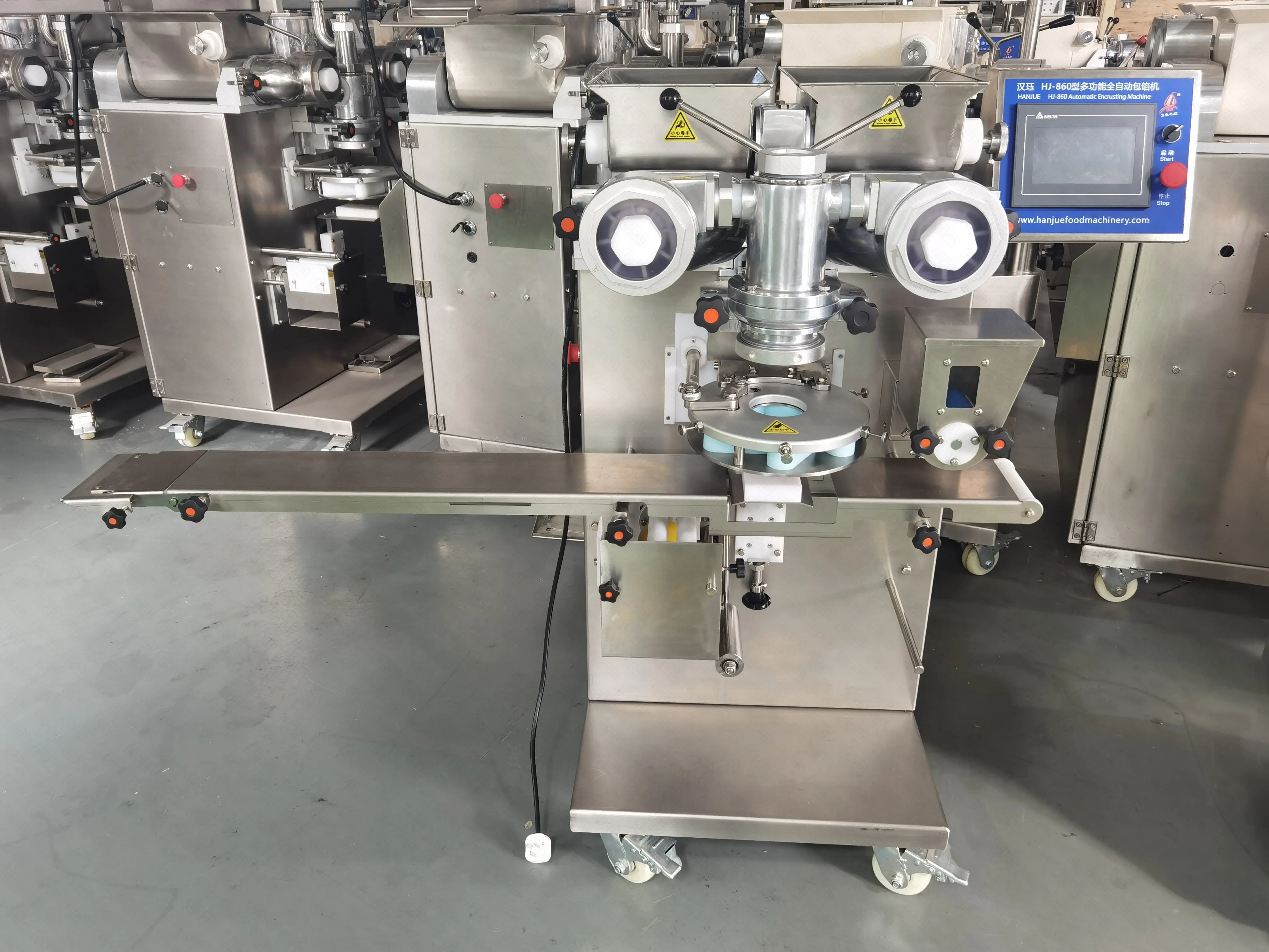 SHANGHAI HANJUE PRECISION MACHINERY CO.,LTD Encrusting machine HJ-860 Комплект поставки: 1. Экструзионная машина HJ-860 в комплекте 2. Форма Коксинья и диафрагма (110-130 гр. Диаметр 55-65мм) 3. Насадки-фрикадельки и диафрагма (40-70 гр.35-50мм) 4. Насадка для котлет и для наполнения с диафрагмой (130-150 гр. длина 120мм, ширина 60мм) 5. Насадка для формирования нагетсов с струнной резкой (25-35 гр.) 6. Насадки и диафрагма для баоцзы (тесто – 50-55 гр., масса начинки – 25-35 гр.) 7. Мучная метелка 8. Бункеры из нержавеющей стали с шнеками. 9. Роликовый прижимной конвейер для котлет. Машина изготовлена из 304 стали.