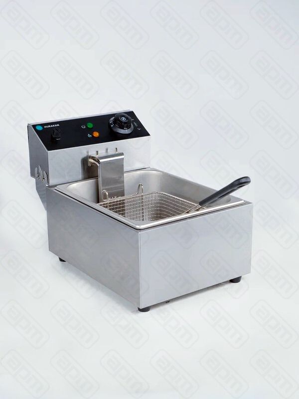 Hurakan HKN-FR6E — промышленная фритюрница для предприятий общественного питания и торговли, предназначенная для приготовления широкого ассортимента блюд во фритюре. Модель оснащена современной электромеханической системой управления и возможностью регулировки температуры, что позволяет готовить качественные блюда в больших объемах. Конструкция из нержавеющей стали обеспечивает надежность и гигиеничность использования.