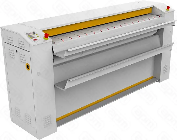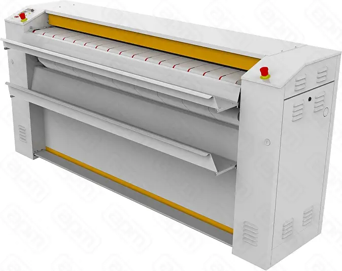 Гладильный каландр для белья с остаточной влажностью 50%: рабочая длина 1800 мм. Вал, Д=325мм. Комплектация: электрический нагрев, корпус из окрашенной стали, напряжение 380В/3фазы + нейтраль, хромированный вал, гладильные ленты из Meta-Aramid 400g/m2 Подача белья на возврат. Электронный контроль температуры. Охлаждающая система "cool-down". Устройство безопасности пальцев оператора. Алюминиевый стол для подачи белья с удобным встроенным лотком. Система вытяжки пара. Ножная педаль с двойным импульсом. Переменная скорость глажения - 1,6-5 м/мин, производительность - 50 кг/час. Габариты: 2340x550x1100 мм. Мощность 25,30 кВт.