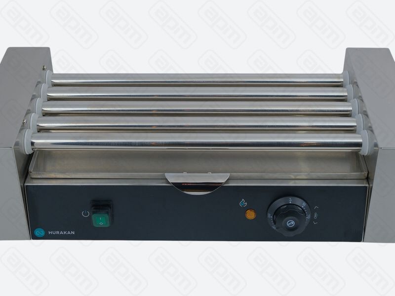 Hurakan HKN-GW5M — роликовый гриль для приготовления колбасных изделий и мяса методом равномерного обжарки на вращающихся роликах. Предназначен для предприятий общепита и розничной торговли, оснащён регулятором температуры и индикатором готовности продукта. Конструкция выполнена из качественной нержавеющей стали, обеспечивающей долговечность эксплуатации.