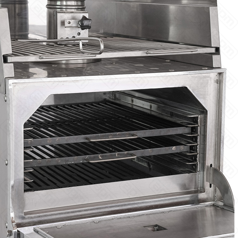 — Прочная конструкция из нержавеющей стали с двумя решетками для гриля обеспечивает долговечность и устойчивость к высоким температурам — Рабочая температура +300…+500 C позволяет готовить на 35% быстрее, чем в традиционном открытом гриле — Камера из нержавеющей стали — Дверь покрыта жаропрочной эмалью красного цвета — Термометр на двери позволяет отслеживать температуру в камере — Пружинная система дверных петель облегчает открывание и закрывание — Контроль потока воздуха через нижнюю и верхнюю заслонки для регулирования интенсивности горения углей — Закрытый зольник и жироуловитель обеспечивают чистоту рабочего пространства — Сверху расположена решетка для подогрева продуктов при температуре +45 C
