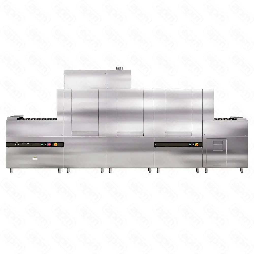 Габариты: 5020х1017х2220 мм, 48000 Вт, 380 В, размеры проема 715х460 мм, теплообменник, сушка, 2000 тарелок/час, 4 программы мойки, 2 дозатора (моющий, ополаскивающий), насос мойки.