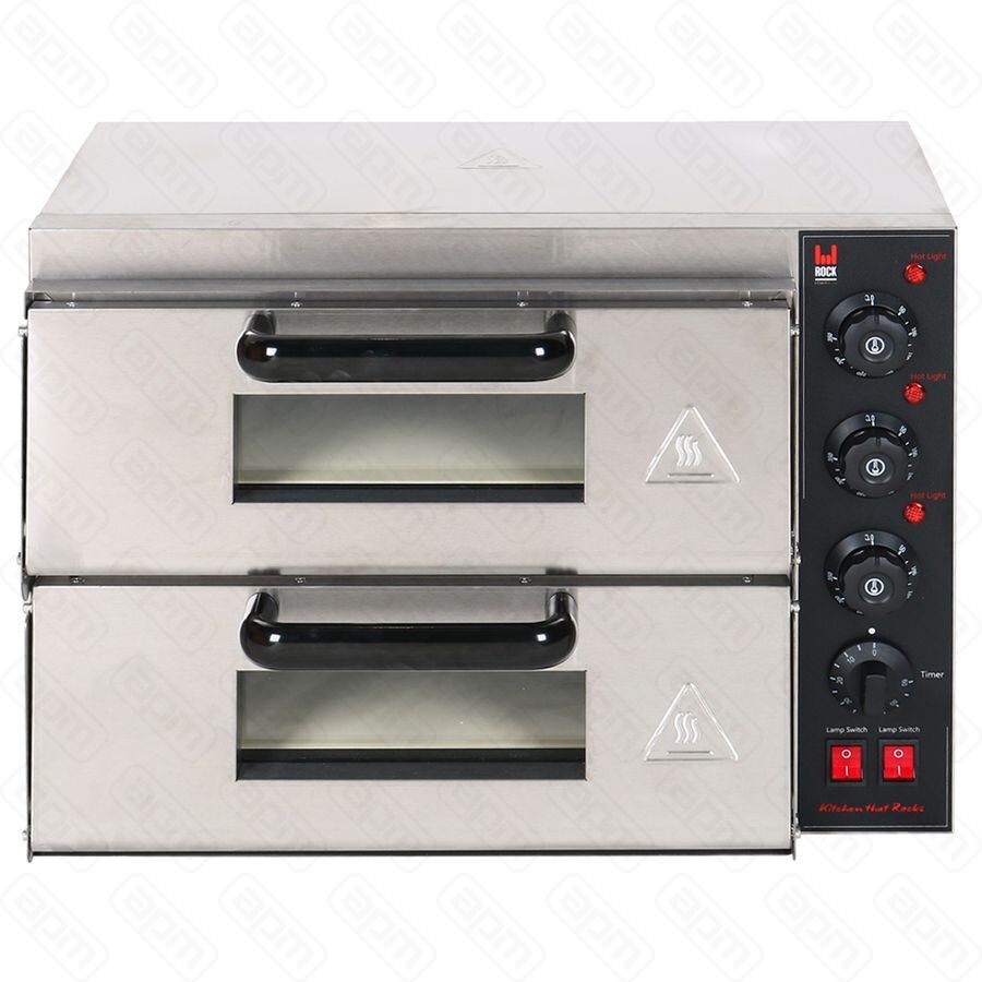 Печь для пиццы, 2 камеры на 1 пиццу каждая, размер камеры 400x400x150мм, макс.темп 360С, таймер, керамический под, 3 кВт, 220В, корпус из нерж.стали, подсветка