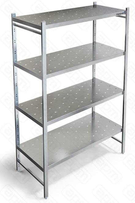 Стеллаж ТЕХНО-ТТ СТР-554/1506 ПЕРФОР. предназначен для хранения посуды и инвентаря, а также сухих продуктов на предприятиях общественного питания и торговли. Особенности: