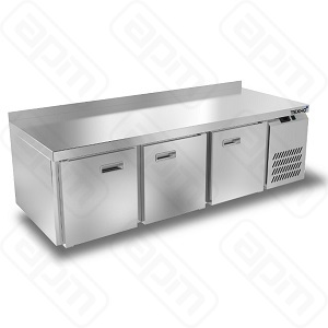 — Борт высотой 50 мм — Столешница и корпус из нержавеющей стали марки AISI 430 — Задняя панель из оцинкованной стали — Полезный объем стола: 309 л — Компрессор (Испания) — Петля доводчик (Польша) — Нога опорная круглая, регулировка 50 мм (Италия) — Полка решетка регулируемая по высоте с шагом - 45 мм, гастронормированная, нагрузка: 35 кг