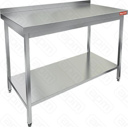 Стол производственный пристенный с бортом и полкой HICOLD НСО-11/6БП предназначен для раскатки теста и обработки ингредиентов для приготовления блюд, а также может использоваться в качестве дополнительного места для установки кухонных приборов на предприятиях пищевой промышленности, общественного питания и торговли, в пекарнях и кондитерских. Технические характеристики:
