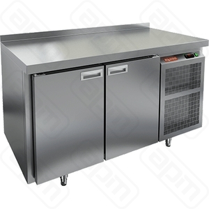 Стол с охлаждаемым шкафом производства HICOLD (Россия), модель BN 11/TN О предназначен для использования на профессиональной кухне и сочетает в себе функциональность рабочей поверхности и холодильной камеры. Он используется для приготовления и хранения пищевых полуфабрикатов. Конструкция стола включает в себя стальную столешницу, двухсекционную холодильную камеру.