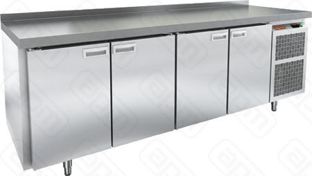 Стол с охлаждаемым шкафом производства HICOLD (Россия), модель SN1111/TN W предназначен для использования на профессиональной кухне и сочетает в себе функциональность рабочей поверхности и холодильной камеры. Он используется для приготовления и хранения пищевых полуфабрикатов. Конструкция стола включает в себя стальную столешницу, четырехсекционную холодильную камеру.