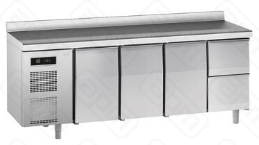Стол с охлаждаемым шкафом, производства SAGI (Италия) модель KIGC2A, предназначен для использования на профессиональной кухне и сочетает в себе функциональность рабочей поверхности и холодильной камеры. Он используется для приготовления и хранения пищевых полуфабрикатов.