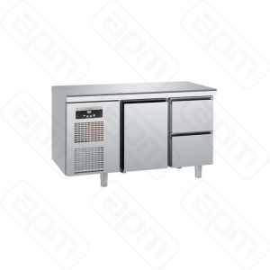 Стол с охлаждаемым шкафом, производства SAGI (Италия) модель KUAA, предназначен для использования на профессиональной кухне и сочетает в себе функциональность рабочей поверхности и холодильной камеры. Он используется для приготовления и хранения пищевых полуфабрикатов. Особенности: