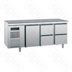 Стол с охлаждаемым шкафом, производства SAGI (Италия) модель KUB4M, предназначен для использования на профессиональной кухне и сочетает в себе функциональность рабочей поверхности и холодильной камеры. Он используется для приготовления и хранения пищевых полуфабрикатов. Особенности:
