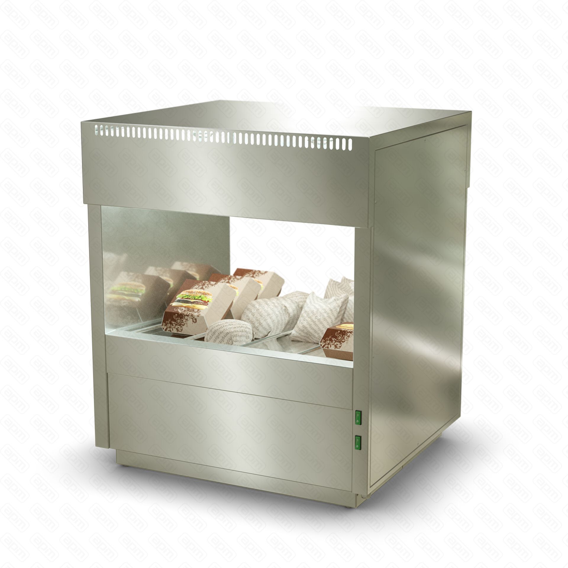 - Подогрев продукта и освещение зоны выкладки производится четырьмя инфракрасными лампами, расположенными над зоной выкладки